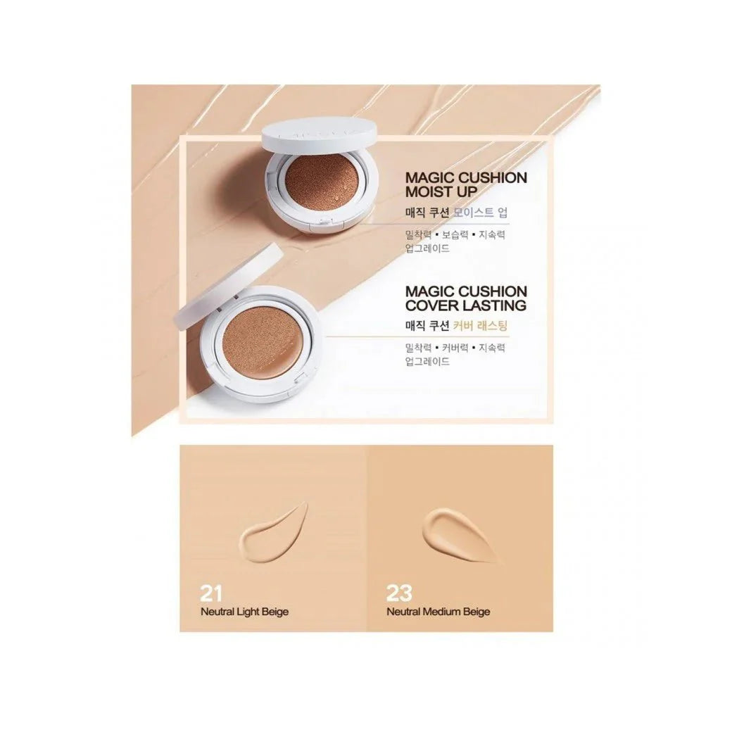 - Full Coverage & Flawless Finish: The MISSHA Magic Cushion Cover provides full coverage, effectively concealing blemishes, redness, dark spots, and uneven skin tone. Its lightweight formula blends seamlessly for a smooth and natural-looking finish.