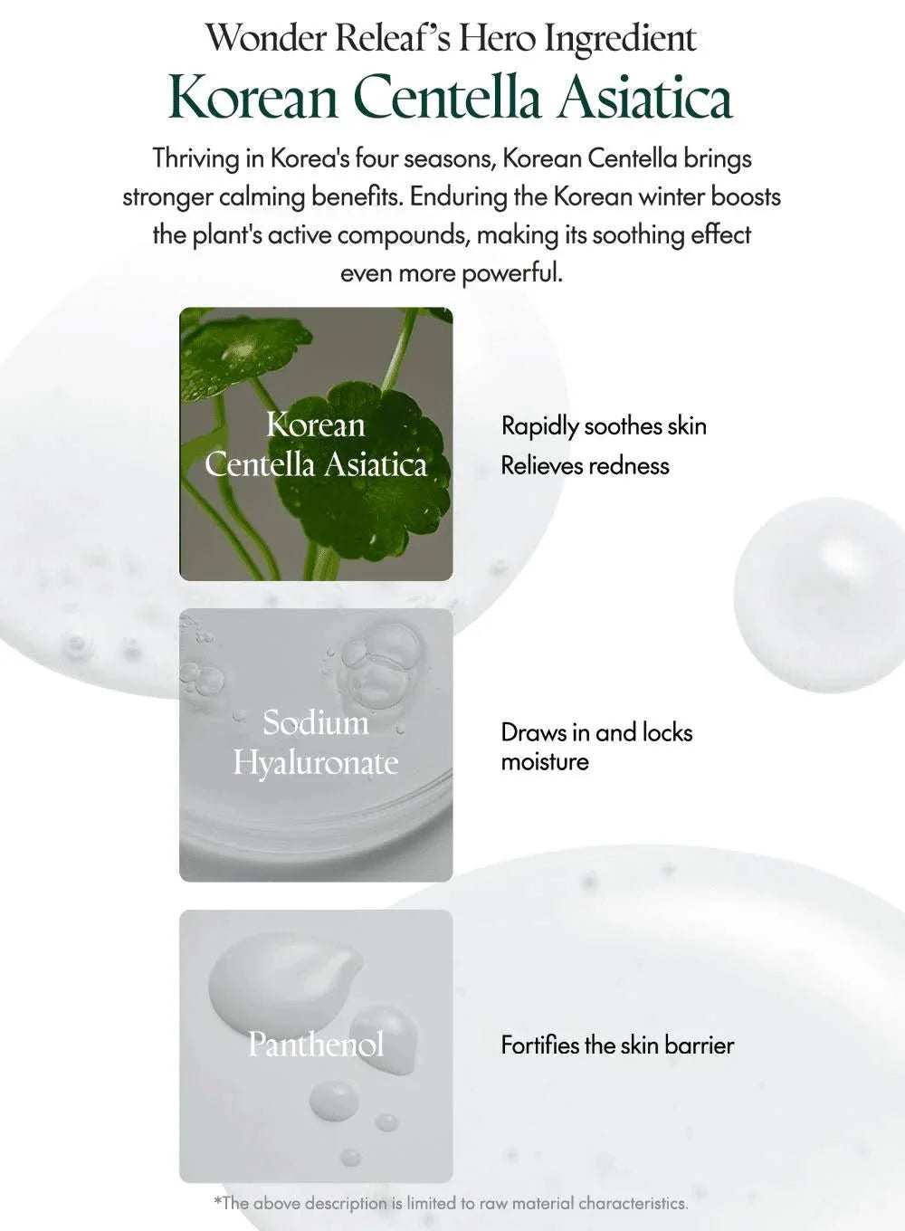 Madecassoside: A powerful component derived from Centella that aids in skin regeneration, promoting faster recovery of damaged or irritated skin.