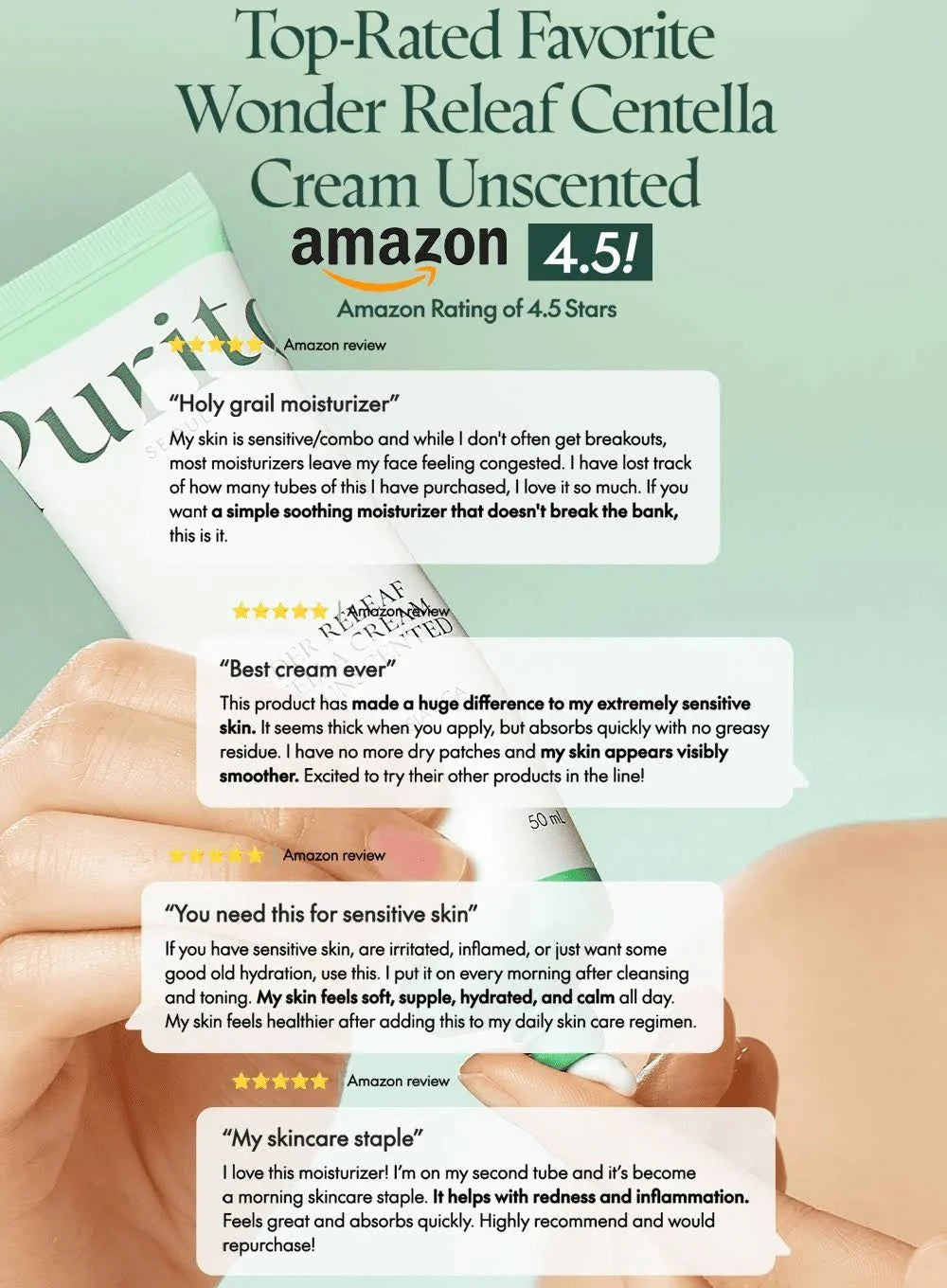 This unscented formula is perfect for those with sensitive skin or anyone seeking a calming, non-irritating moisturizer. Whether you're dealing with dry patches, redness, or just need an everyday moisturizer that works to repair the skin barrier, the PURITO Wonder Releaf Centella Cream is here to provide your skin with the care it deserves.